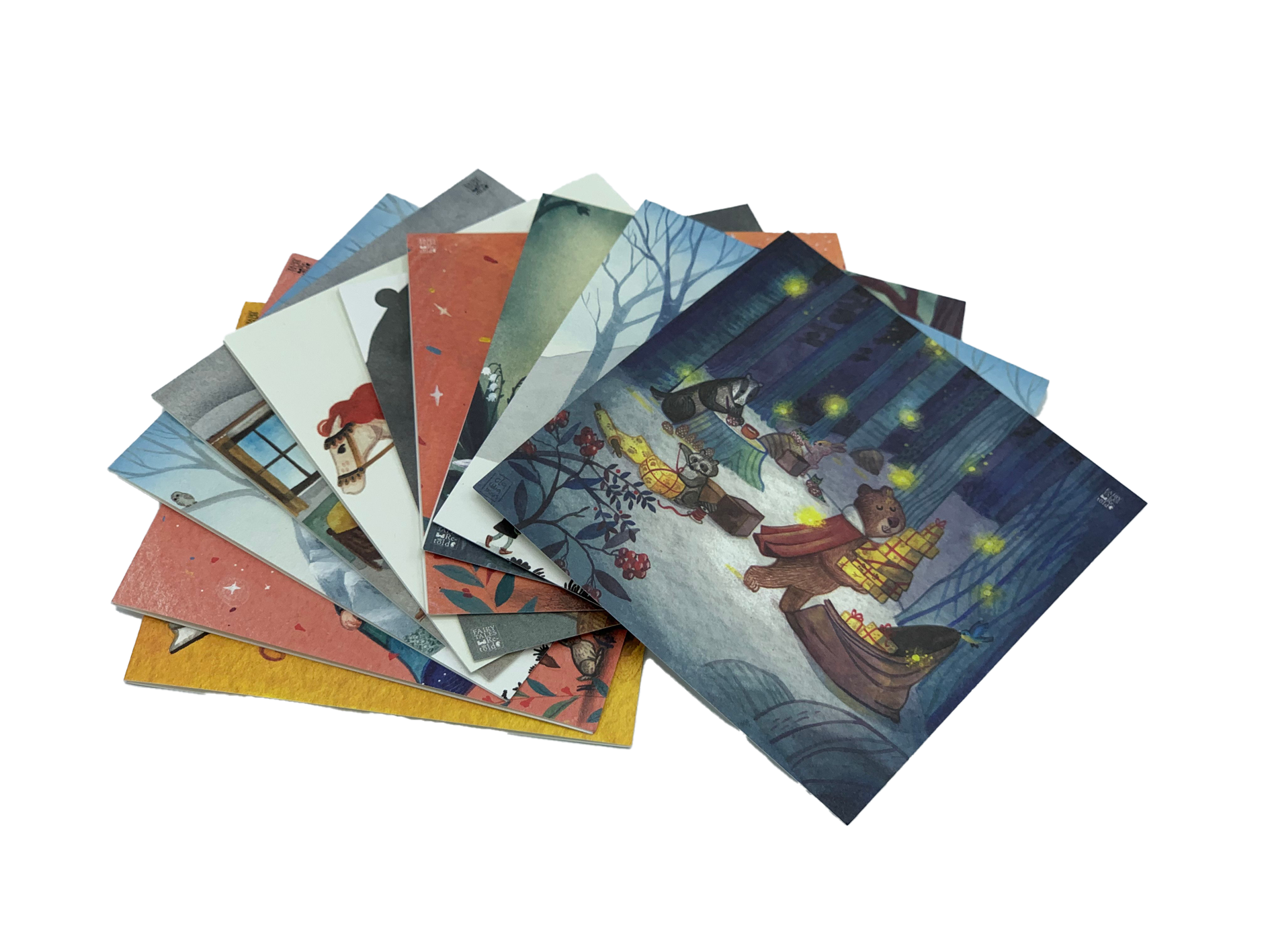 • 10 hand-drawn, beautifully illustrated cards